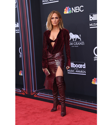 Jennifer Lopez always gives me sexy and chic. This wine color on her looks fabulous with her complexion! The dramatic neck line and the split in her dress, screams fierce. Go J.Lo!!!